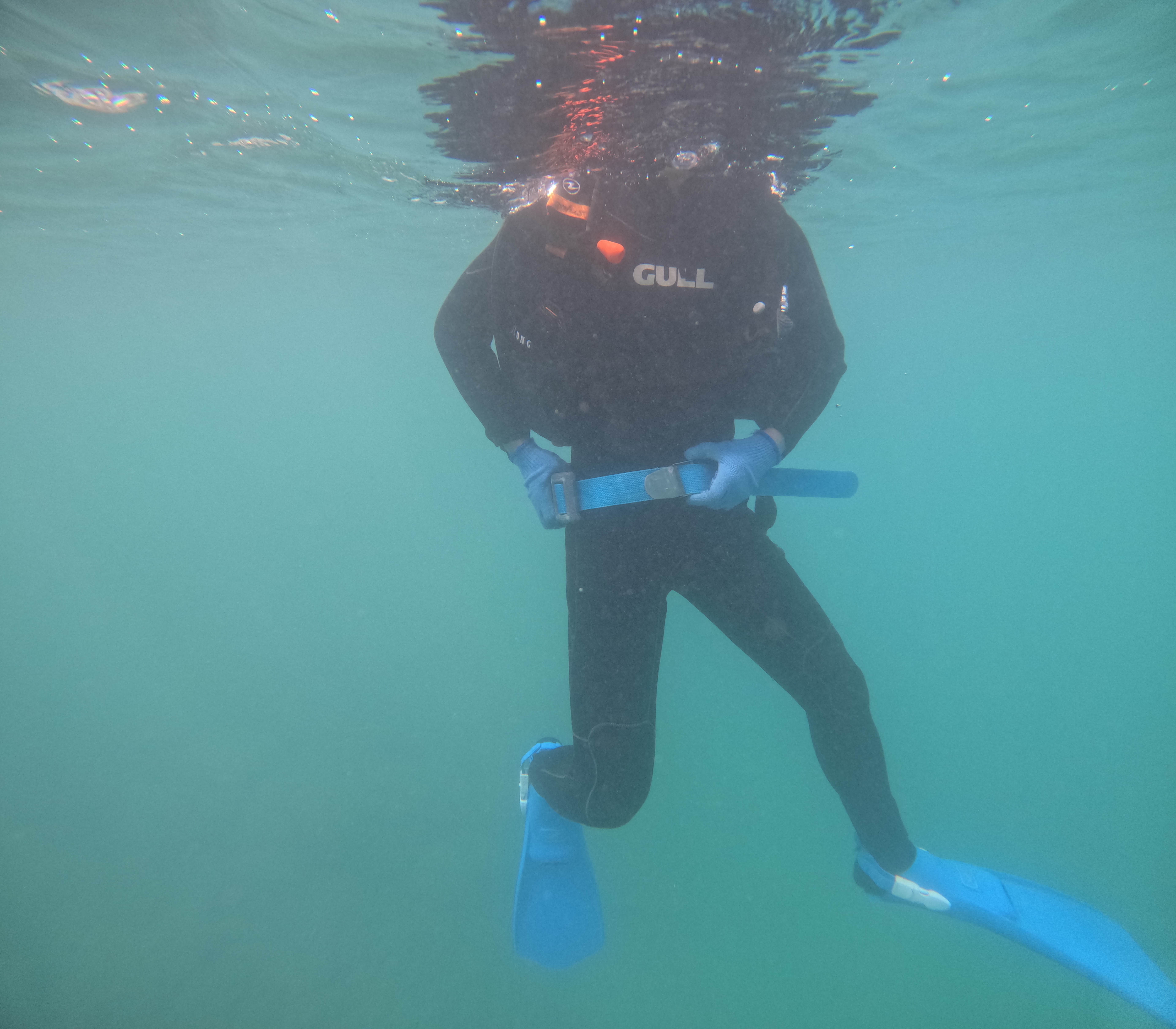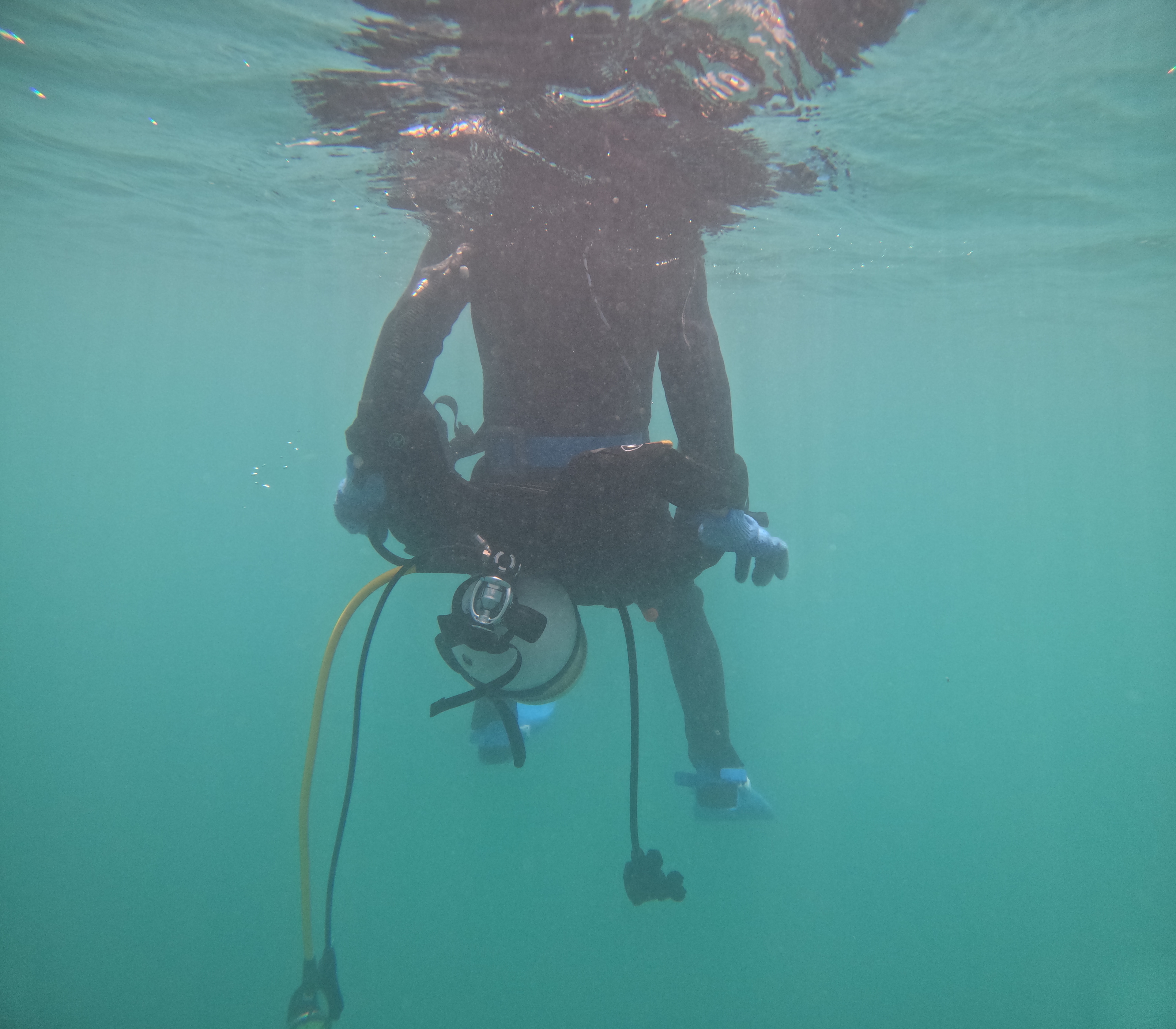 水中でのスクーバ・キッド脱着は、身体のバランスが崩れやすいスキルですが、慌てることなく落ち着いて行うことが出来ました。
