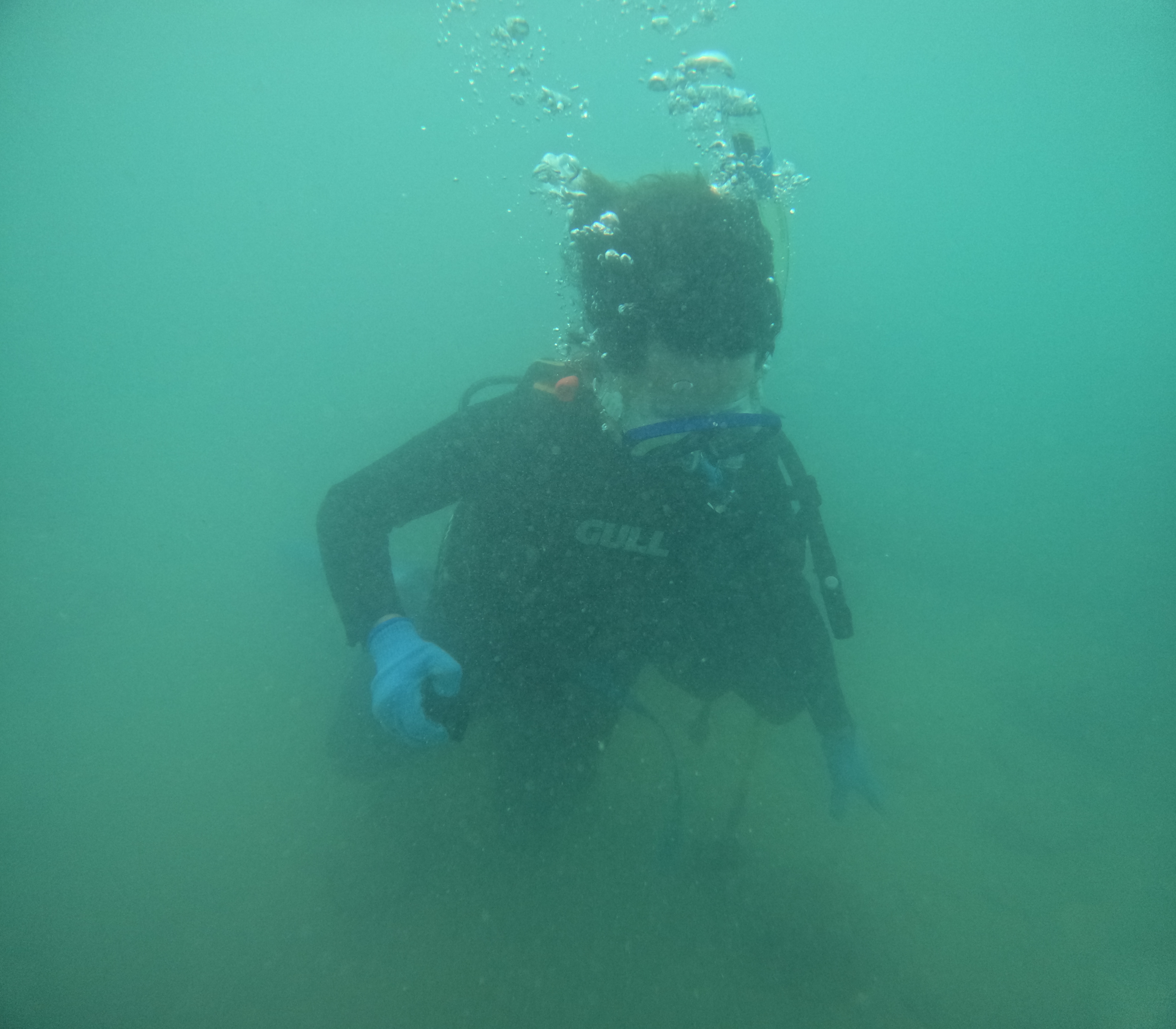 その後は呼吸を意識してゆっくりと泳いでいき、残圧のチェックも忘れずに行います。浮力コントロールは呼吸の使い方が非常に重要です。すぐに呼吸の使い方を理解されたようで、劣悪な透明度の中も綺麗に泳ぐことが出来ました。