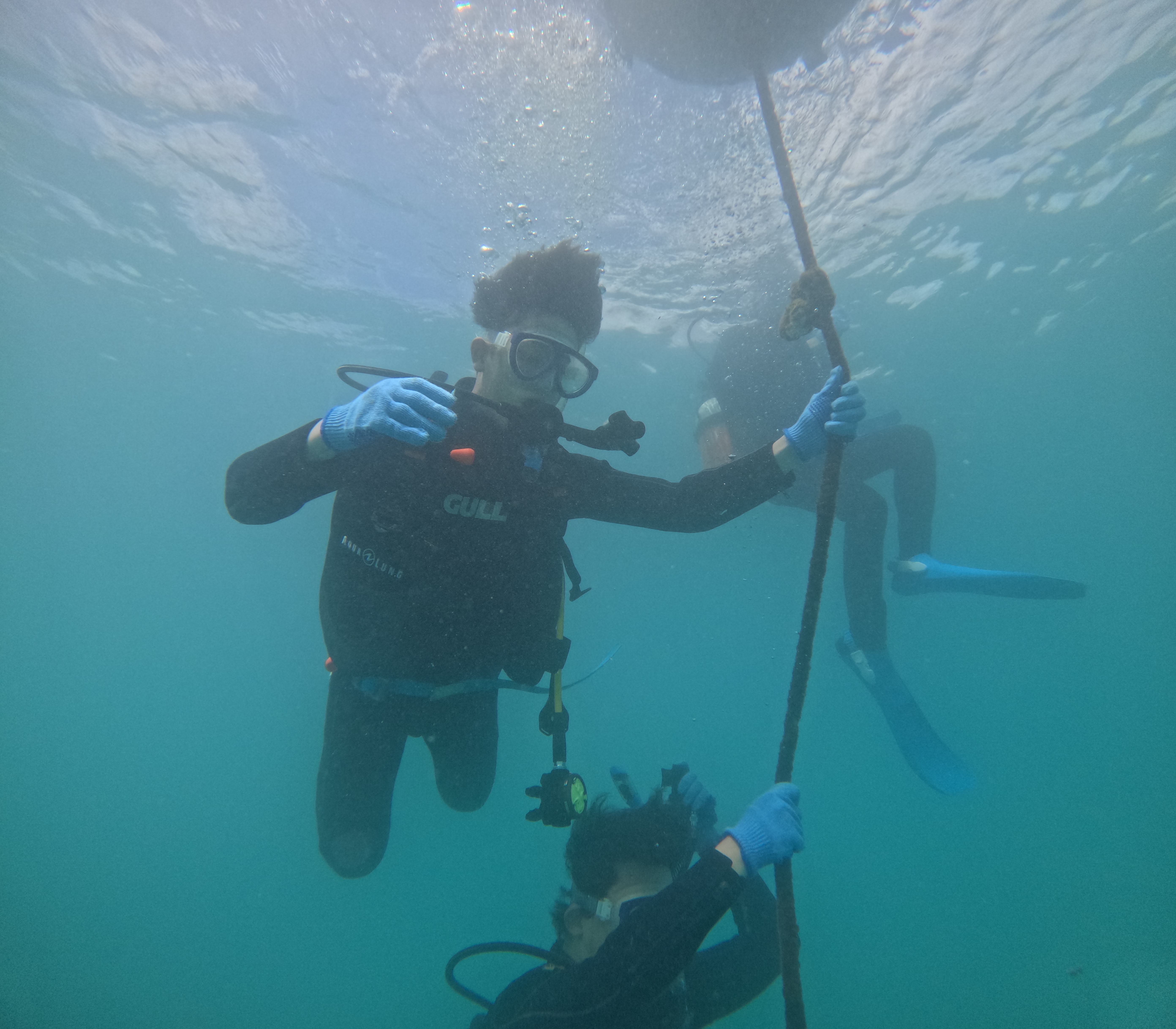 オープン・ウォーター・ダイブでは、ロープを使ったコントロールされた潜降もイメージどおりしっかり出来ました。耳抜きのタイミングやコツもつかめましたね。