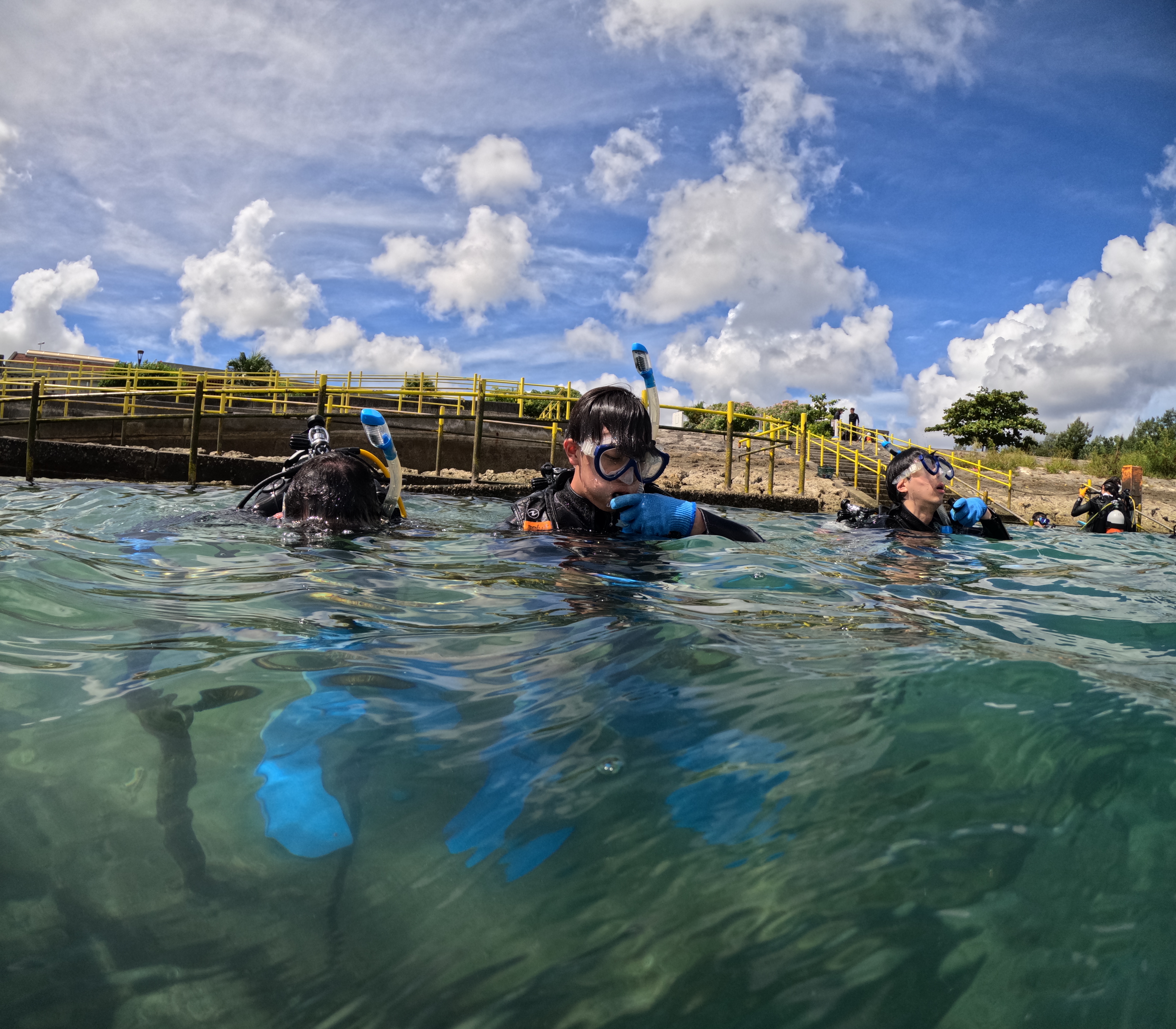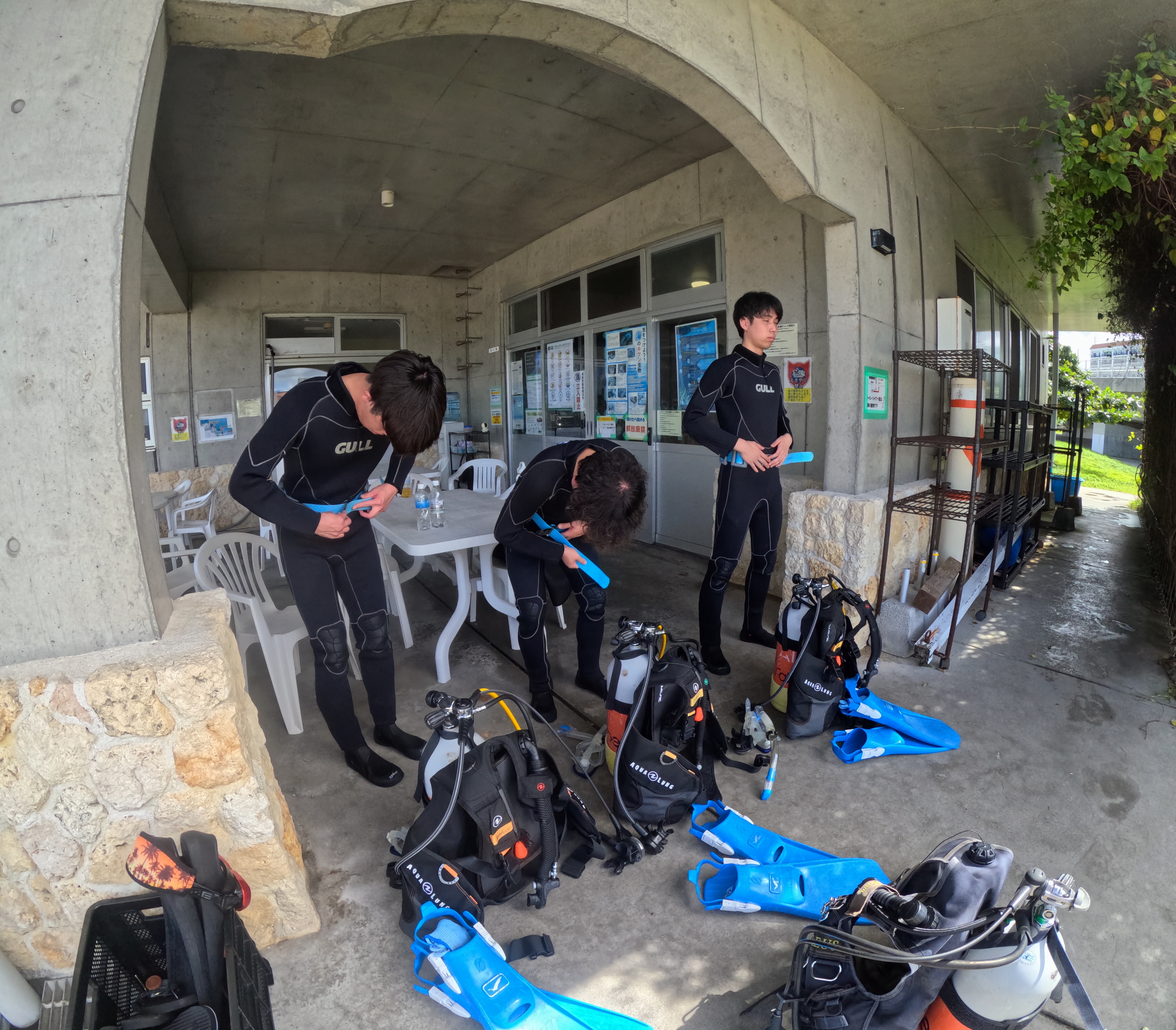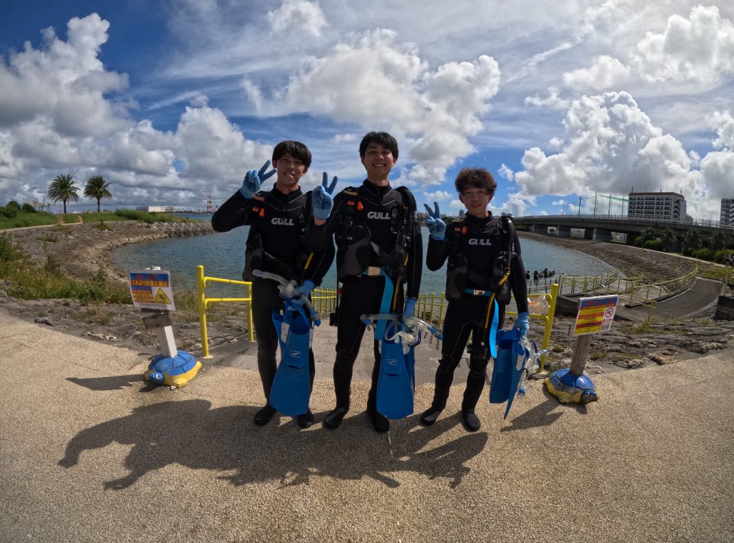 今日は那覇シーサイドパークにてオープン・ウォーター・ダイバー・コース初日です。職場の同僚3人でのご参加ありがとうございます。楽しんでスキルを身につけて、充実したコースになるよう頑張って行きましょう!