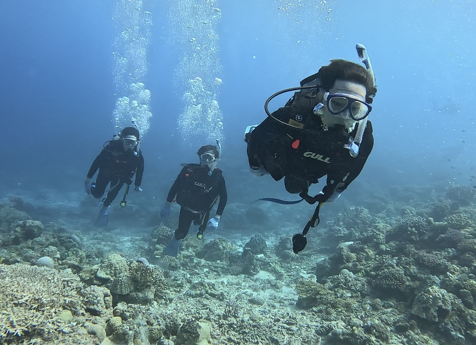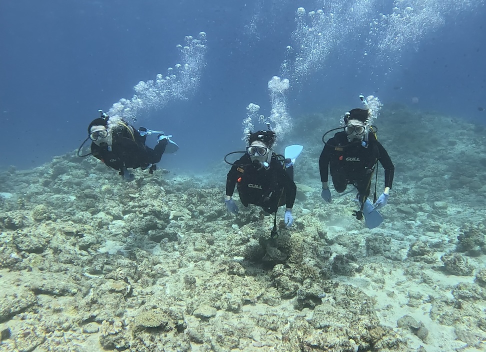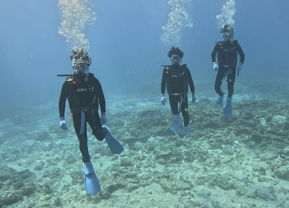 2ダイブ目はでは適正ウェイトを知り、何度も練習することで、浮力を上手にコントロールしながら、中層を綺麗に泳げるようになりました。トレーニングの成果がめきめきと表れていますね。