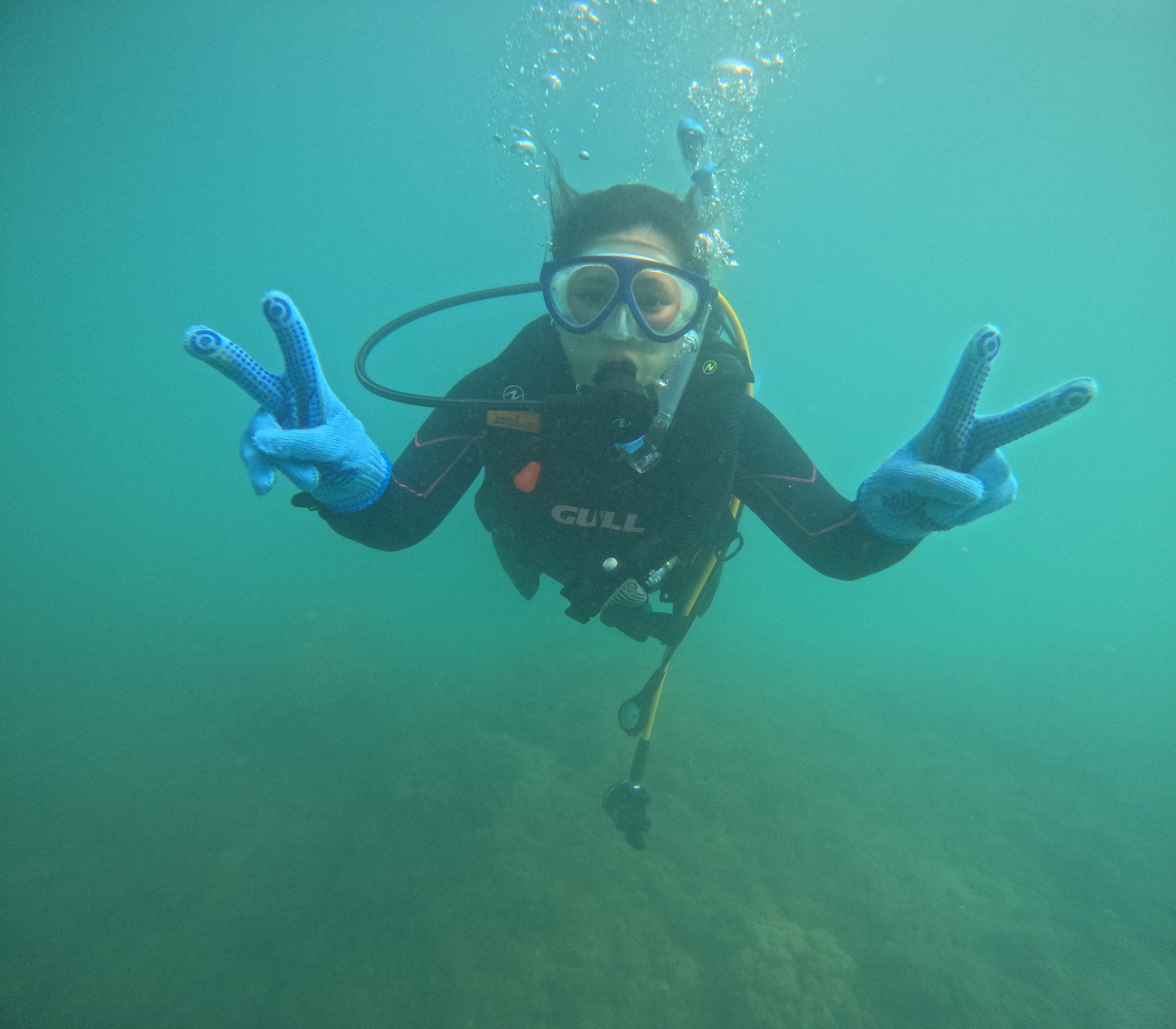 オープン・ウォーター・ダイブでは、ロープを使ったコントロールされた潜降もイメージどおりしっかり出来ました。耳抜きのタイミングやコツもつかめましたね。