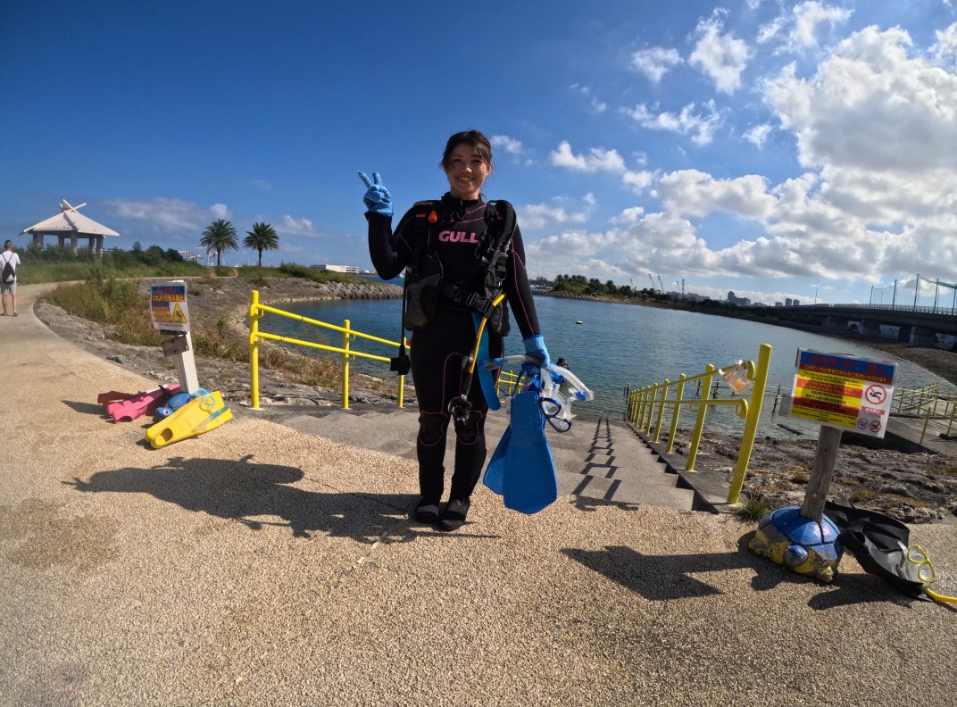 今日は那覇シーサイドパークにてオープン・ウォーター・ダイバー・コース初日です。体験ダイビングを何度かご経験されてのご参加とのことですが、楽しんでスキルを身につけて、充実したコースになるよう頑張って行きましょう!