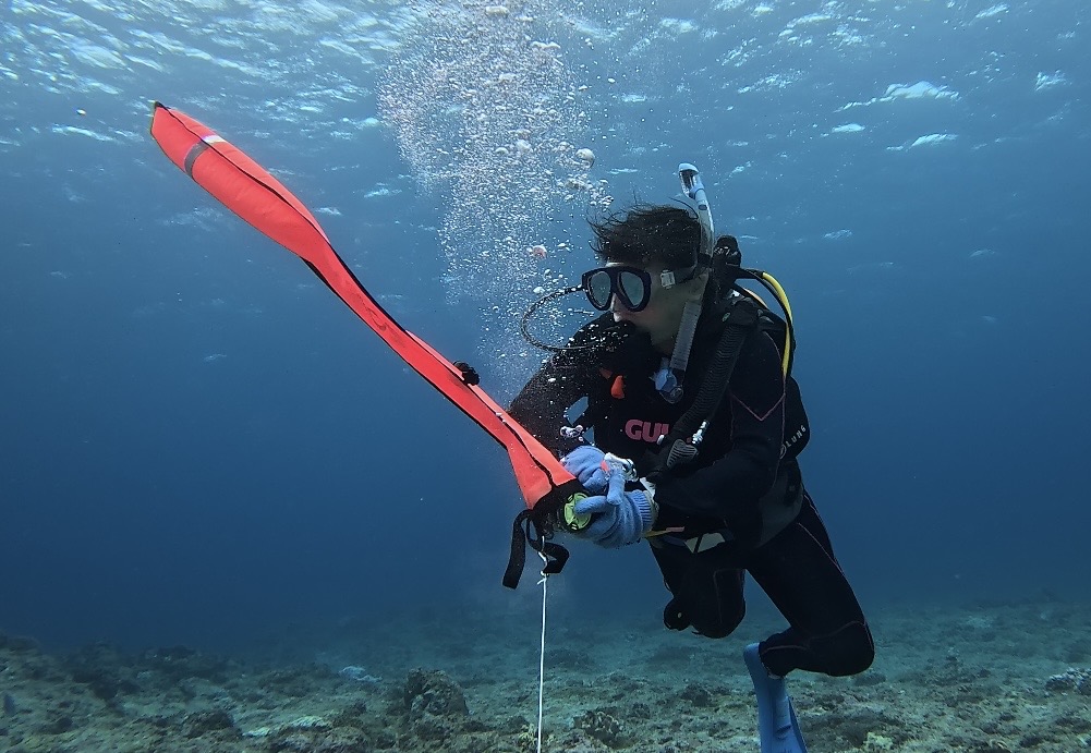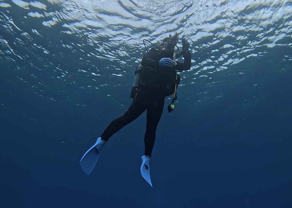 水中で楽な姿勢バランスを取っていき海中をゆっくりと泳ぎながら、深度変化に応じて呼吸やBCDの給排気により浮力をコントロールしていきます。