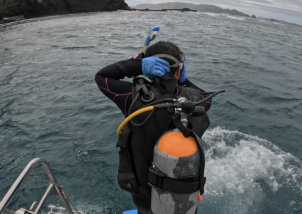 ゆっくりと準備を進めていき、ジャイアントストライドエントリーでライセンス講習スタートです。