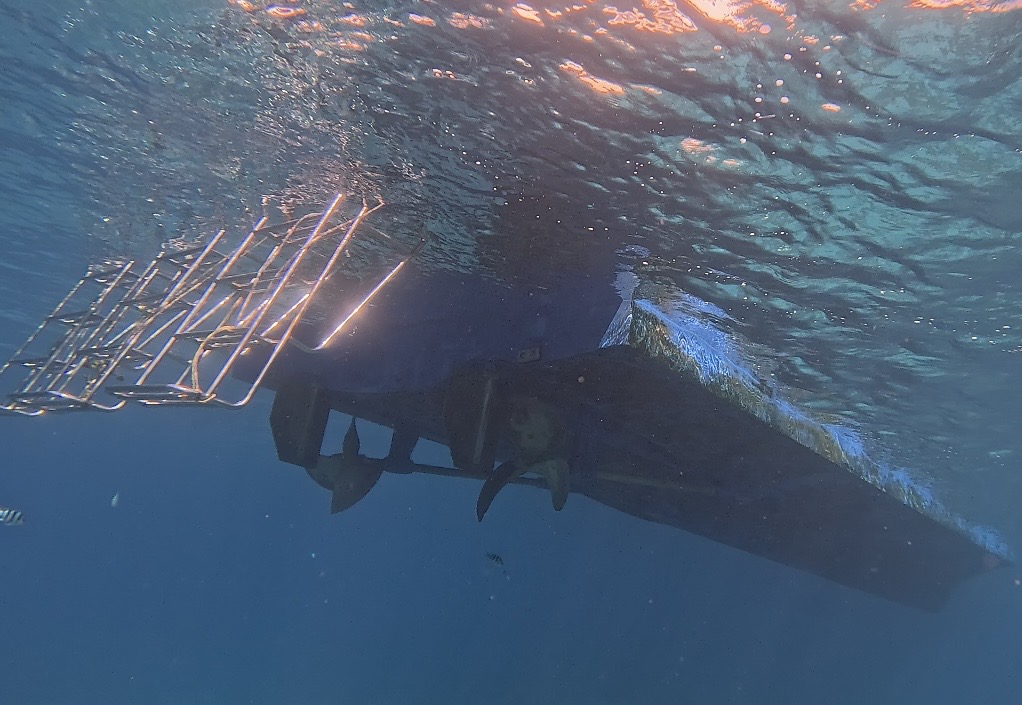 エキジット間際のボート下での安全停止は、ダイブコンンピューターを確認しながら、しっかりと呼吸をコントロールしてホバリングで停止します。呼吸は止めないようにして、身体が浮き始めたら息を吐いて浮力を小さくし、反対に沈み始めたら息を吸って浮力を大きくします。