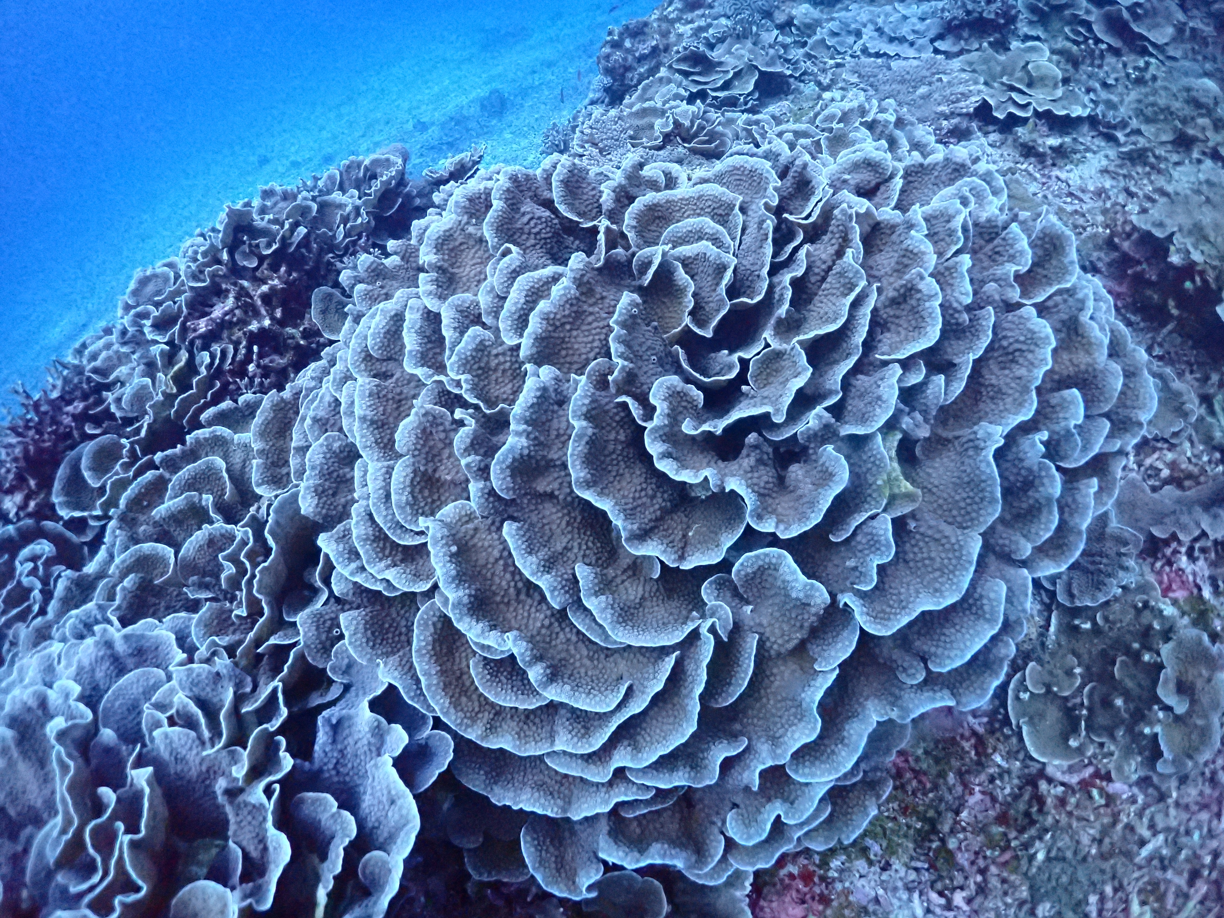 リュウキュウキッカサンゴ(琉球菊花珊瑚)は幾重にも花びらが重なるような形の珊瑚で、まるで海に咲く花のようでもあり、植物のようにも見え、玉菜(タマナー)とも称されます。