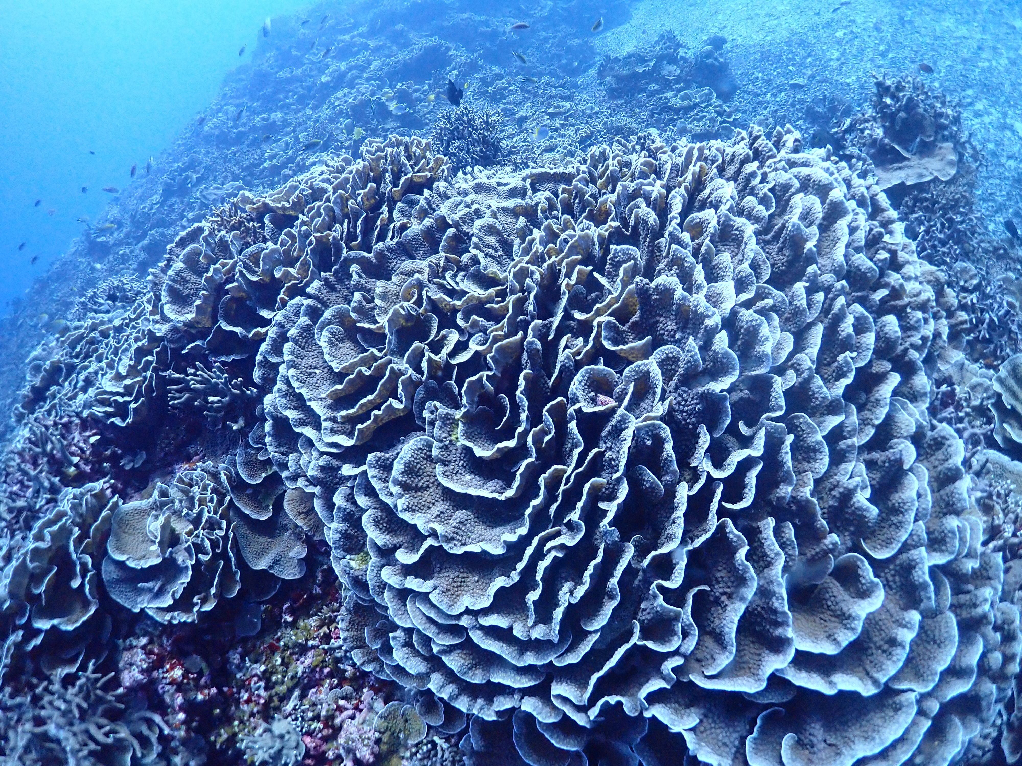 リュウキュウキッカサンゴ(琉球菊花珊瑚)は幾重にも花びらが重なるような形の珊瑚で、まるで海に咲く花のようでもあり、植物のようにも見え、玉菜(タマナー)とも称されます。