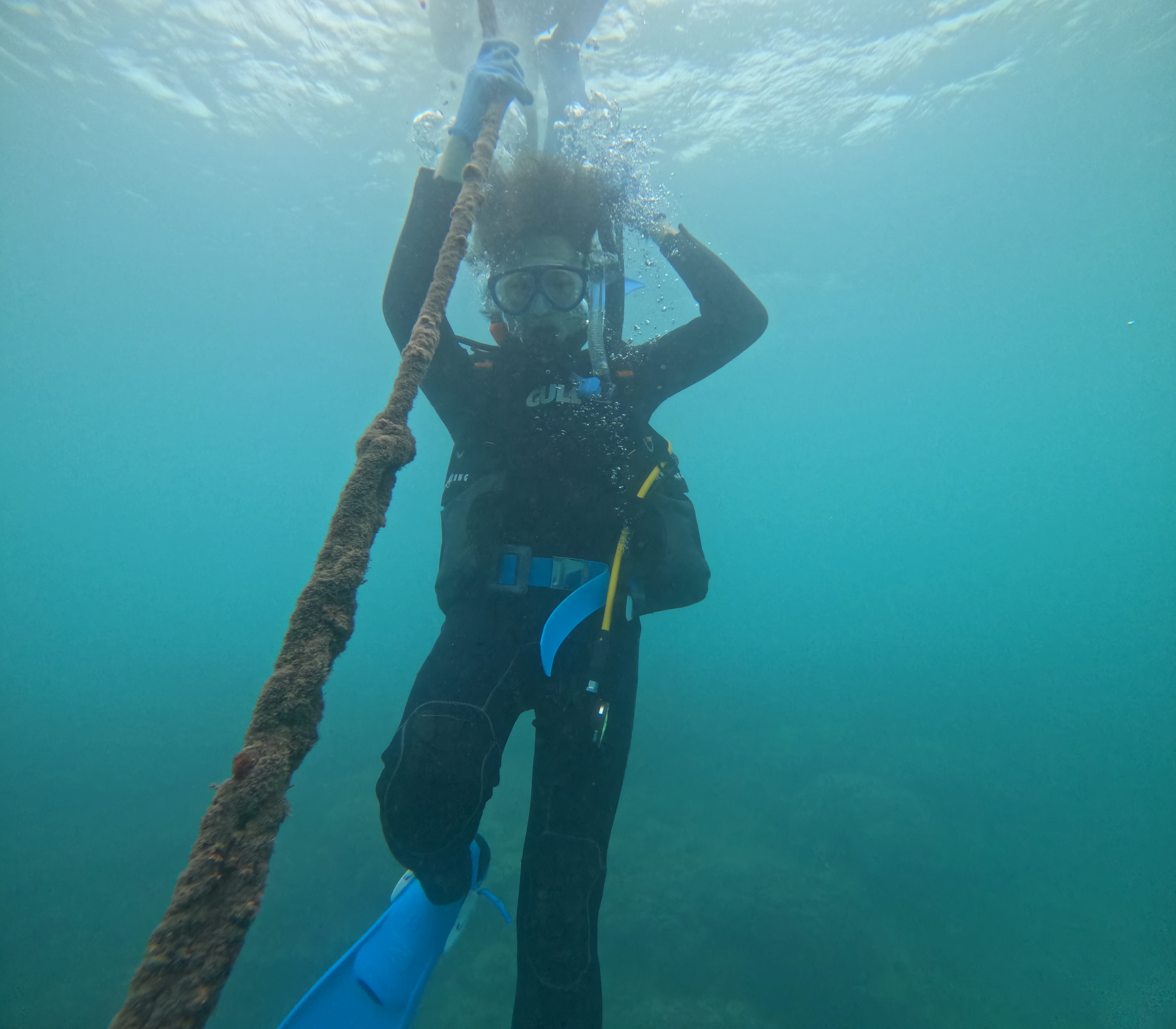オープン・ウォーター・ダイブでは、ロープを使ったコントロールされた潜降もイメージどおりしっかり出来ました。耳抜きのタイミングやコツもつかめましたね。