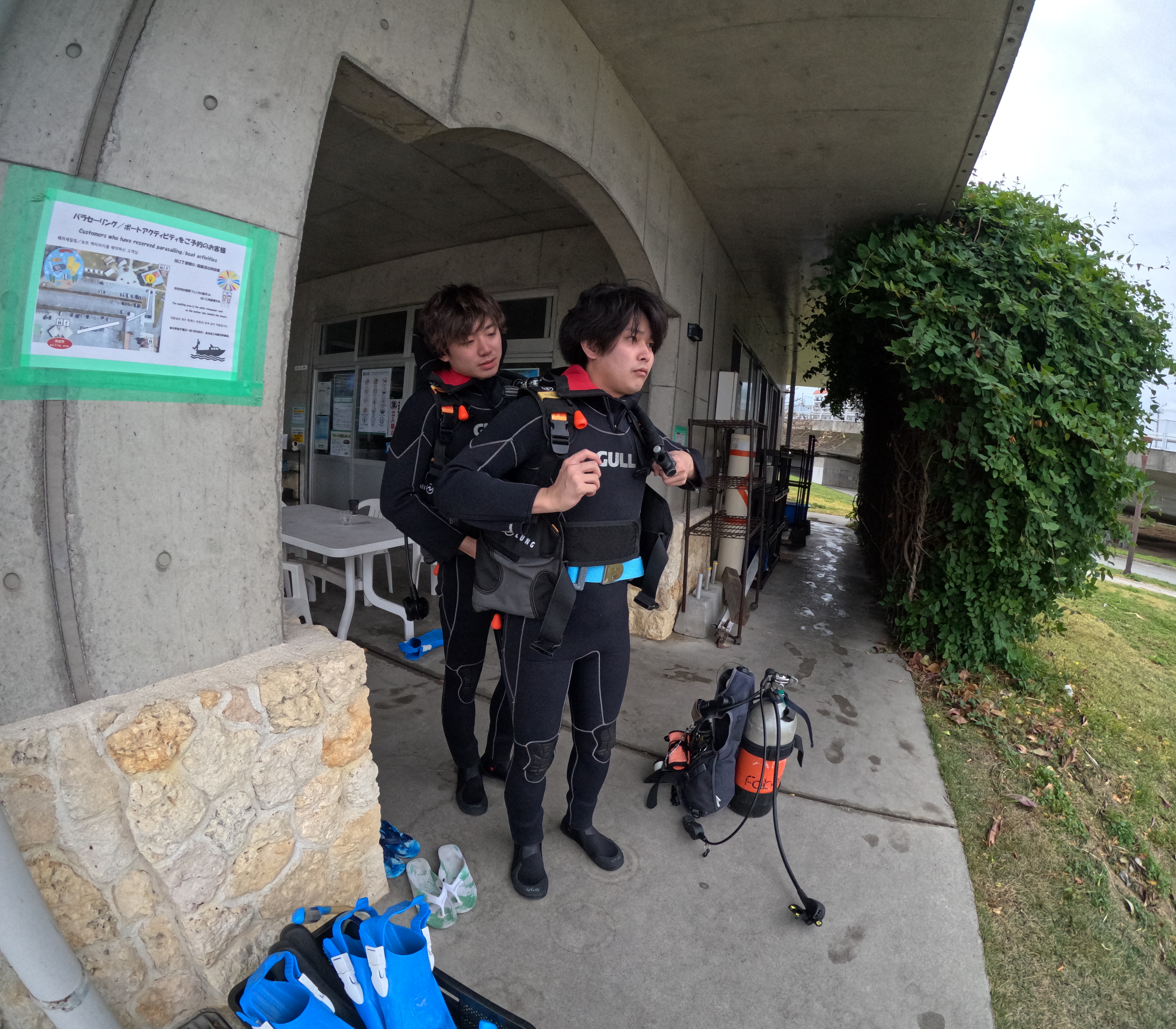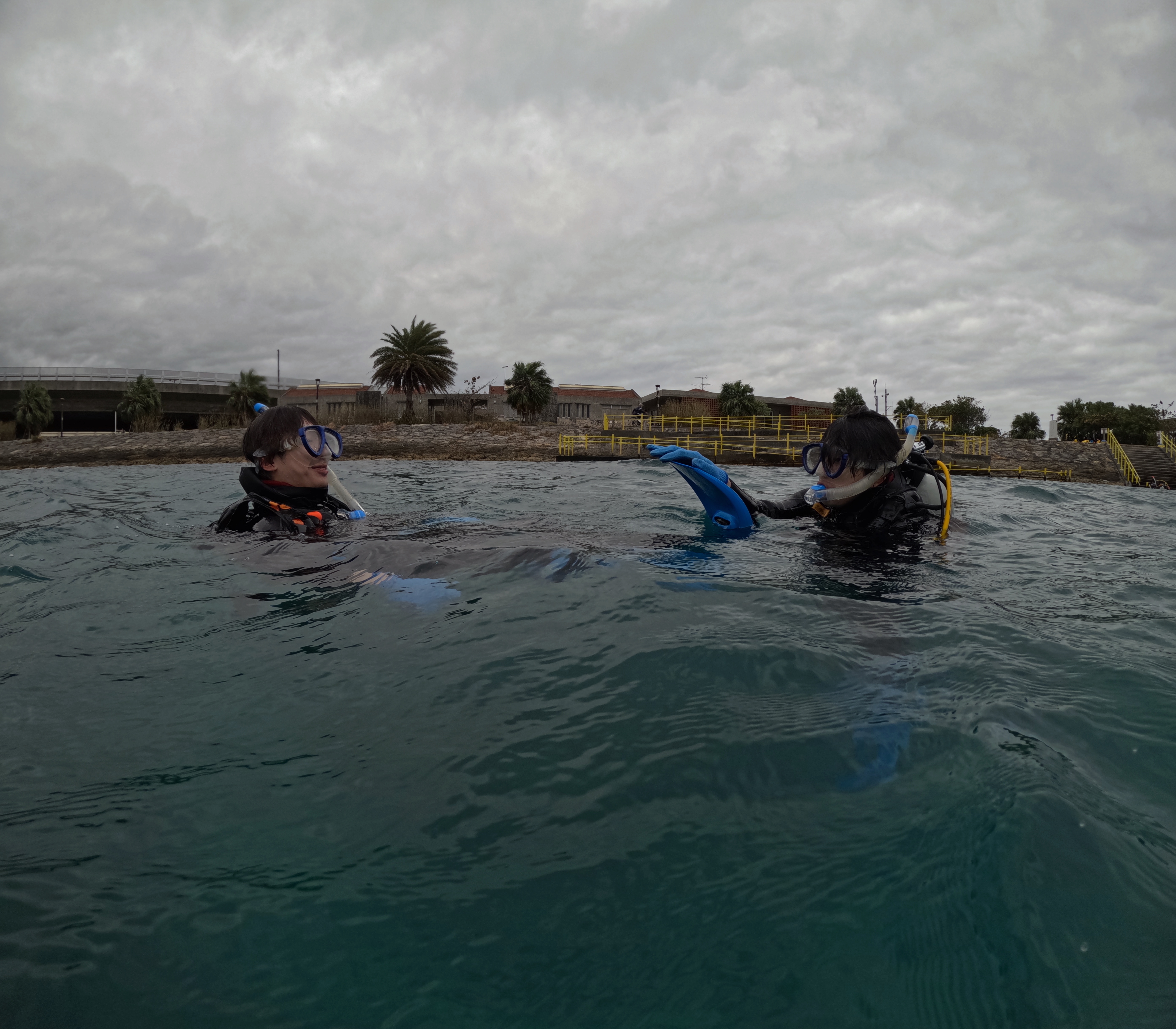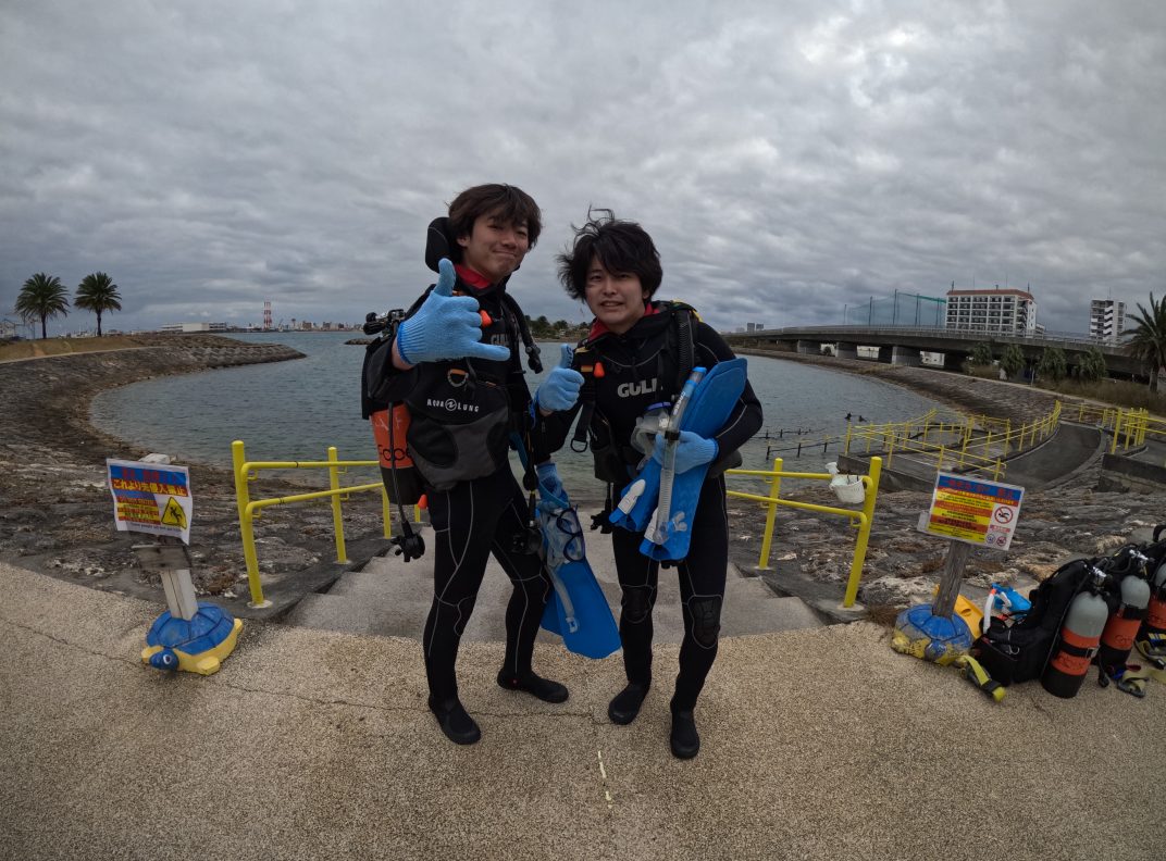 今日は那覇シーサイドパークにてオープン・ウォーター・ダイバー・コース初日です。ダイビングは全く初めてとのことですが、楽しんでスキルを身につけて、充実したコースになるよう頑張って行きましょう!