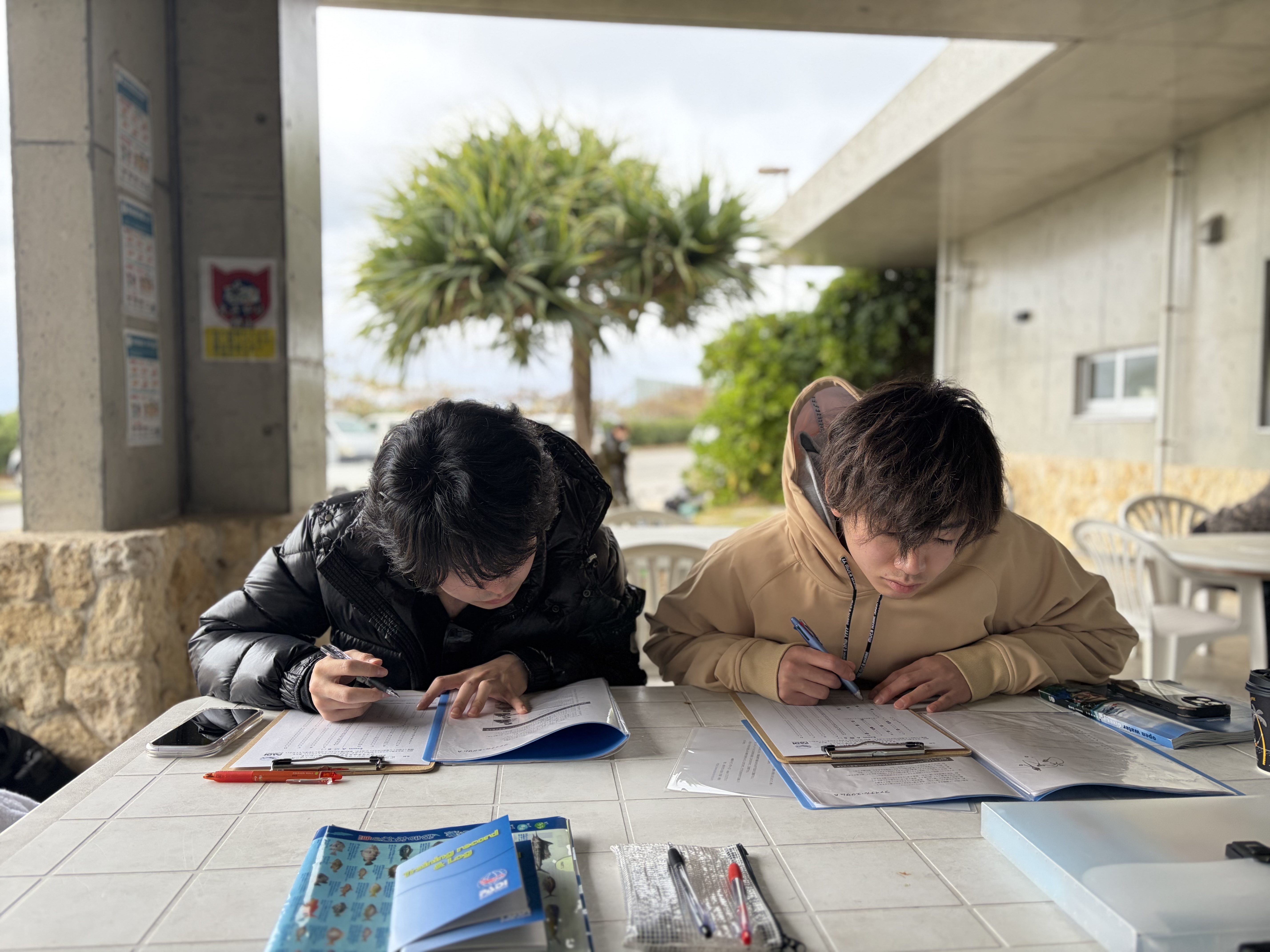 当店で開催されるオープン・ウォーター・ダイバー・コースは2日間でライセンス取得が可能です。あらかじめご自宅等へテキストを送付させていただき、事前学習をしっかりと行ってきていただくことで、講習当日の学科講習の時間が大幅に短縮されるからです。限られたお時間の中で事前にしっかりと学ばれた様子は、最終試験の好成績に表れていました。