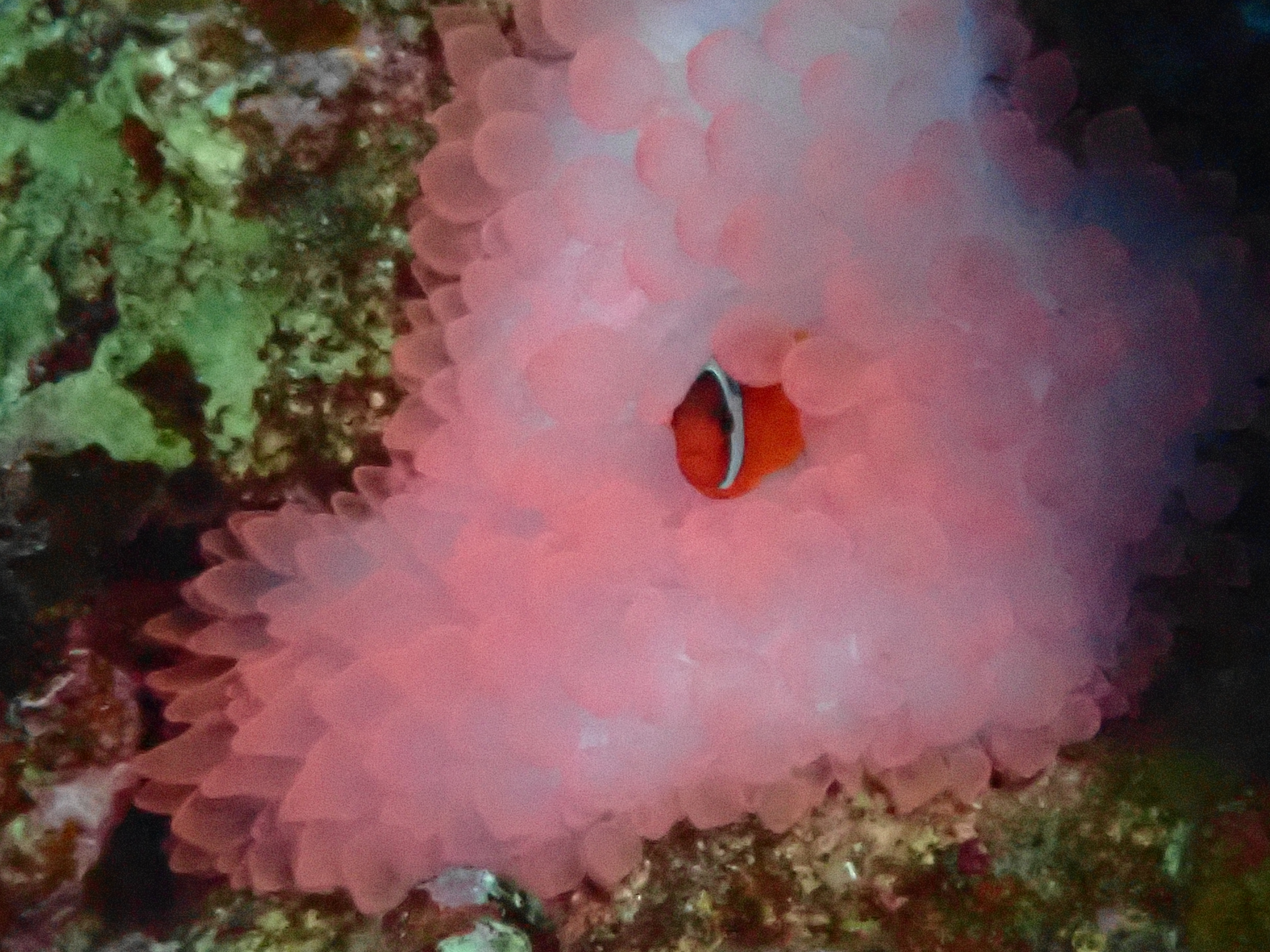 ピンク色のイソギンチャクとハマクマノミはこのポイントの定番です。