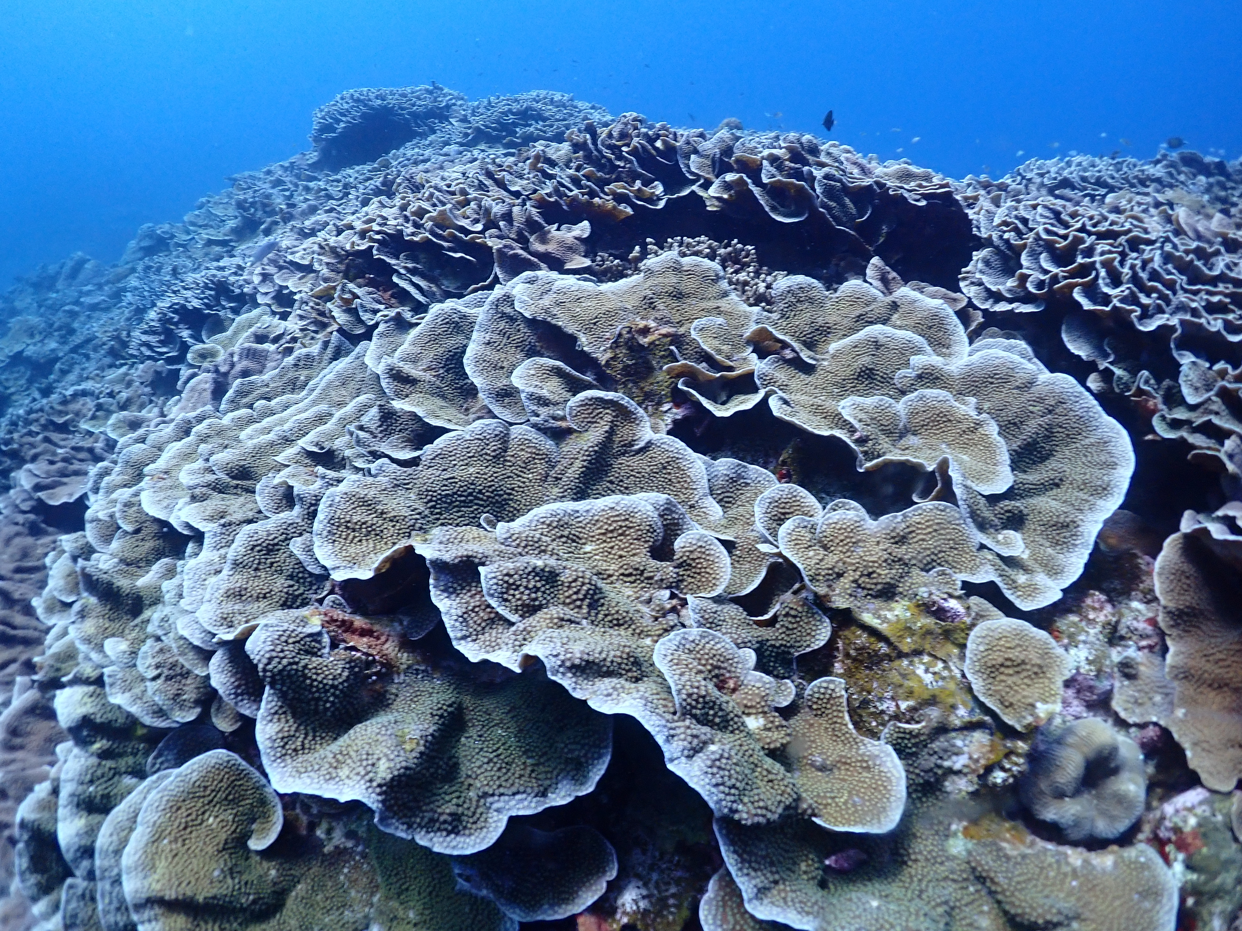 リュウキュウキッカサンゴ(琉球菊花珊瑚)は幾重にも花びらが重なるような形の珊瑚で、まるで海に咲く花のようでもあり、植物のようにも見え、玉菜(タマナー)とも称されます。