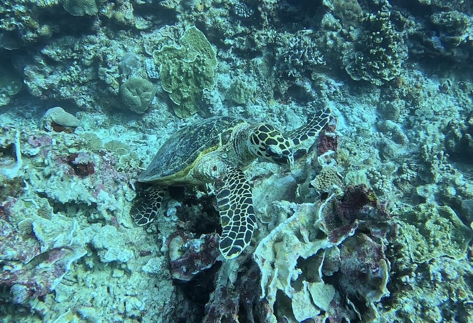 タイマイが珊瑚の上でお食事中でした。